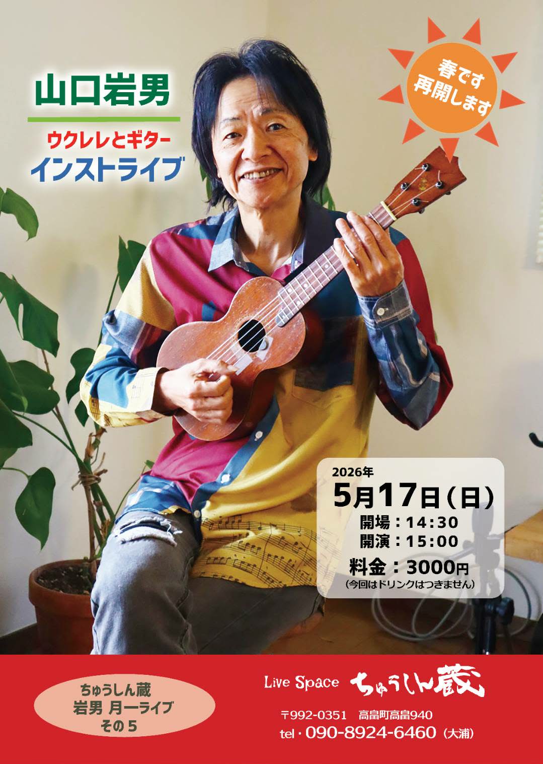 ちゅうしん蔵・山口岩男月一ライブその5 ウクレレとギターインストライブ